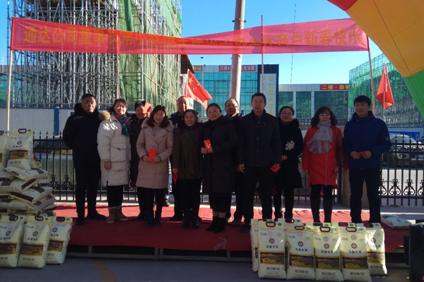1月15日上午10點,通達建材市場新春慰問商戶活動儀式,在建材市場院內(nèi)舉行。公司總裁辦公會成員,及市場相關負責人參加了此次活動儀式。來自市場內(nèi)的全體商戶應邀參加了活動儀式。雖然氣溫已低至零下20度,但卻絲毫沒有阻礙前來參加活動的商戶熱情,活動在歡快祥和的氛圍中進行,讓商戶享受到通達這個大家庭的關愛與溫暖。