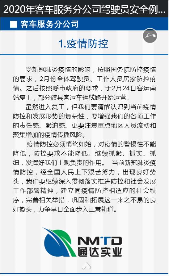 2020年客車服務分公司駕駛員安全例會及線上培訓