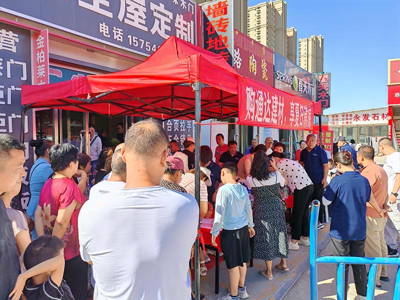 本次活動于2024年7月13日正式拉開帷幕,旨在通過一系列優(yōu)惠措施和清涼福利,回饋廣大商戶長期以來對通達建材的支持與厚愛?;顒悠陂g,凡是在通達建材門店經(jīng)營的商戶,或均可享受專屬的清涼禮包,禮包內(nèi)包含防暑降溫的必備物品,如西瓜、綠豆、白糖等。同時進市場內(nèi)消費的消費者,掃碼關(guān)注“通達建材交易市場”官方抖音號,可獲得專屬清涼禮包一份。本次活動,讓每一位客戶在炎炎夏日中感受到通達建材的關(guān)懷與溫暖。